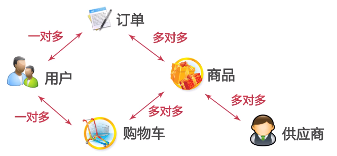 - 实体及实体之间的关系(一对一、一对多、多对多)